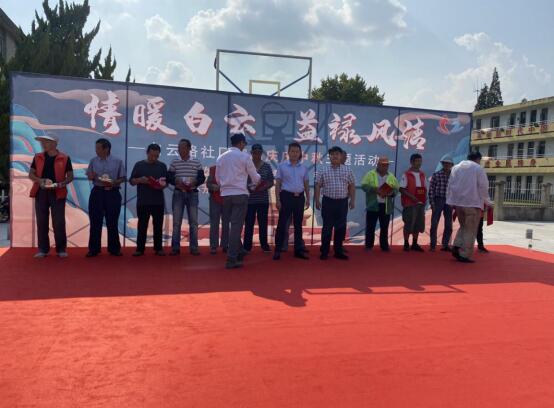首先由白云路社區(qū)張書記致詞,他對落地白云路社區(qū)的社會組織的鼎力相助表示感謝,同時也對祖國母親和社區(qū)居民送去濃濃的節(jié)日祝福。伴隨著《禮儀之邦》音樂,誠明書院的老師們穿著漢服翩翩起舞,正式拉開了聯(lián)歡會的序幕。接下來的節(jié)目是舞蹈《小康之家》,她們展示了她們自信的魅力,舞出了祖國人民的活力。隨后社區(qū)能人呂老師獻唱《長城永在我心上》,會場的居民舉起了手中的小紅旗隨風(fēng)飄舞;具有陽剛威儀的《功夫扇》表演,他們用表演詮釋了中華兒女早已站直了腰板,也堅定了所有人中華民族屹立不倒的信念!表彰環(huán)節(jié)分成了兩批:第一批是表彰那些不畏辛苦,不懼困難,不怕臟不怕累,為社區(qū)清潔做出巨大貢獻的保潔員們;第二批是表彰社區(qū)的老黨員、老教師以及社區(qū)工作人員,她們便是社區(qū)的那一片片“白云”,希望她們不忘初心,也希望越來越多的人加入到我們社區(qū)志愿者隊伍中來。