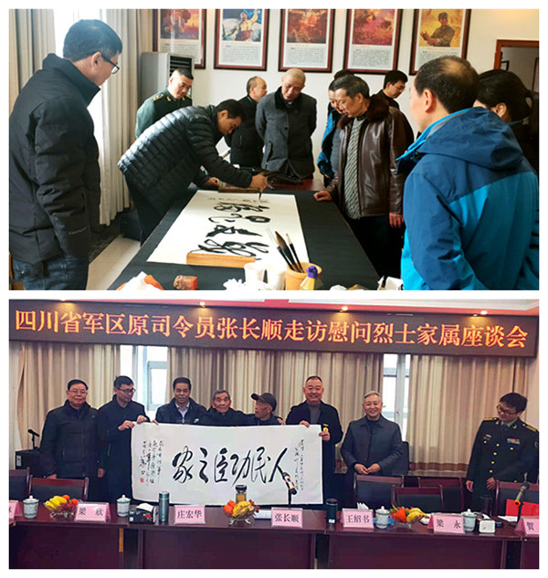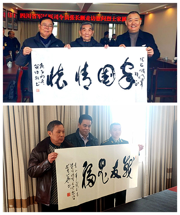 退休后的莊宏華司令員熱愛書法,是四川國防詩書畫院的執(zhí)行院長、著名軍旅書法家。莊司令員不顧旅途勞頓,現(xiàn)場揮毫潑墨,以豪放之筆,書英烈之魂,字如游龍,心似潮涌,展風骨,獻愛心,揚正氣,抒情懷,為烈士親屬和現(xiàn)場嘉賓現(xiàn)場創(chuàng)作和奉獻了眾多精美的書法藝術作品。