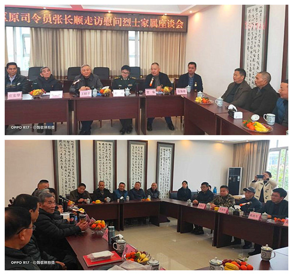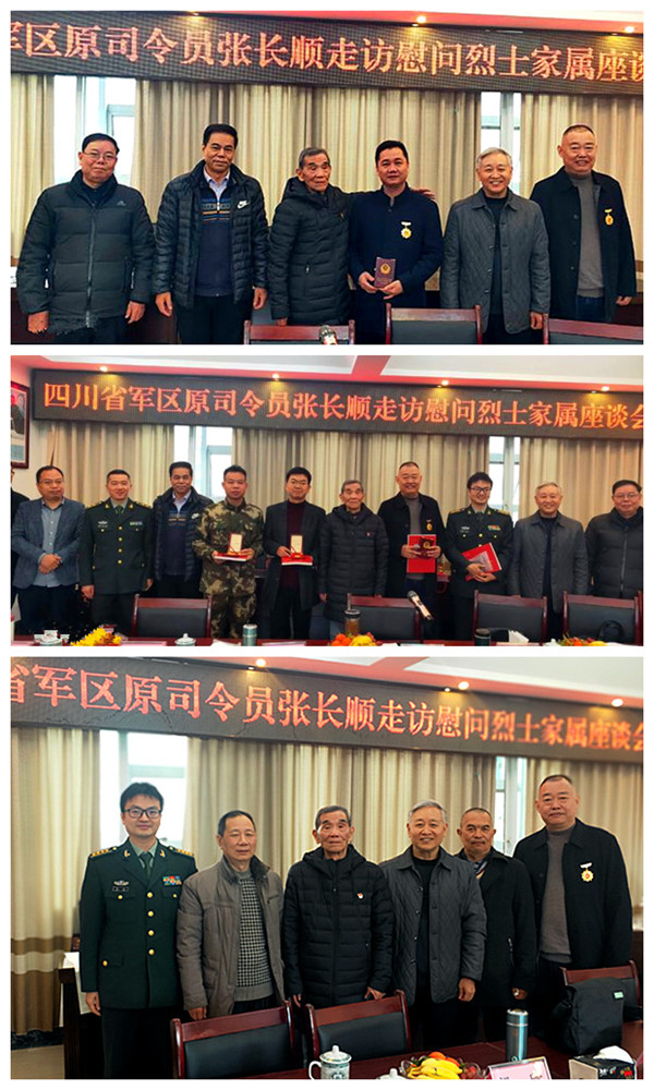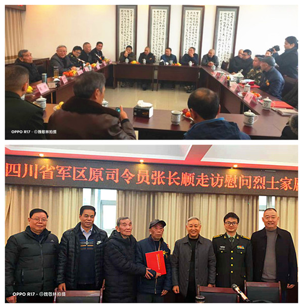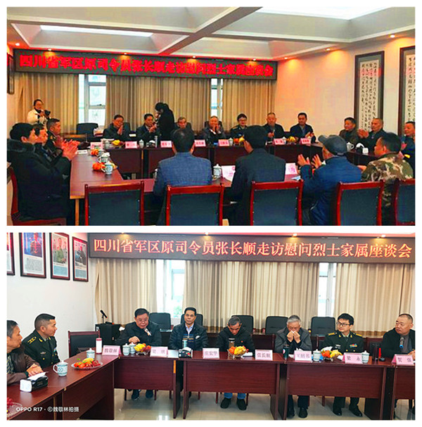 將軍一行上午九時到達長寧,在長寧縣武裝部會議室,當?shù)攸h政軍領導和有關部門舉行了張將軍一行看望慰問葉志剛烈士親屬的見面會。宜賓市和長寧縣參加慰問活動的領導主要有:宜賓軍分區(qū)副司令員梁永,宜賓市退役軍人事務局黨組成員、副局長賀強,中共長寧縣委副書記陳勝軍,長寧縣人武部政委彭俊杰,長寧縣退役軍人事務局局長黃華,長寧縣退役軍人事務局副局長梁登海,長寧縣退役軍人事務局黨組成員、服務中心主任車鑫,長寧縣退役軍人事務局辦公室副主任袁治,宜賓軍分區(qū)政工科副團職干事蒲興友,葉志剛烈士的生前戰(zhàn)友,宜賓市廣東商會張錦操會長等30余人參見了見面會。葉志剛烈士的父親、84歲高齡的葉良均老人到會面見了張長順將軍一行。