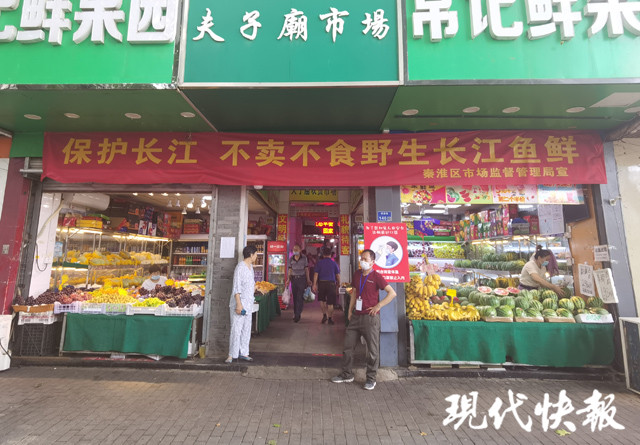 7月22日,現(xiàn)代快報(bào)記者走訪了南京多家餐飲、農(nóng)貿(mào)市場(chǎng)及水產(chǎn)商鋪發(fā)現(xiàn),江鮮已無(wú)跡可尋。一些餐飲店、農(nóng)貿(mào)市場(chǎng)和水產(chǎn)商鋪的門頭,還貼有“保護(hù)長(zhǎng)江,不賣不食野生長(zhǎng)江魚鮮”“禁止江鮮交易,保護(hù)美好家園”“十年禁漁,方才有魚”等宣傳標(biāo)語(yǔ),告知消費(fèi)者禁售情況。
