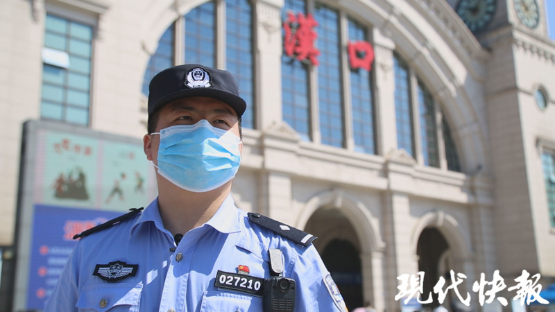 △涂可藹在漢口火車(chē)站執(zhí)勤,為武漢市民提供疏導(dǎo)服務(wù)。