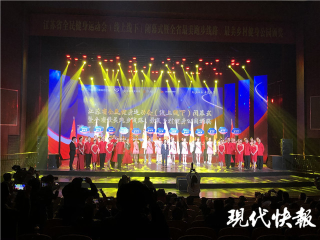 活動在開場秀《圓夢小康》中拉開帷幕。整場活動分為《引領(lǐng)•小康夢》、《融合•新篇章》、《未來•再出發(fā)》三個篇章,將瑜伽、廣場舞、健身氣功、體育舞蹈等項目表演與獎項頒發(fā)相結(jié)合?,F(xiàn)代快報記者在現(xiàn)場看到,第一篇章通過開場片《奔跑,2020》回顧了江蘇體育一年來的發(fā)展成果,隨后揭曉了2020江蘇最美鄉(xiāng)村健身公園年度榜、最美跑步線路年度榜和網(wǎng)絡(luò)人氣獎;第二篇章,世界冠軍和廣大網(wǎng)友以“云合唱”的形式,共同演繹首屆網(wǎng)絡(luò)全民健身運(yùn)動會的會歌《運(yùn)動夢想家》,展現(xiàn)了疫情防控常態(tài)化下江蘇體育人積極向上的精神風(fēng)貌,本篇章還頒發(fā)了江蘇省首屆網(wǎng)絡(luò)全民健身運(yùn)動會的最佳組織獎;第三篇章以短片的形式,回顧了江蘇省第八屆全民健身運(yùn)動會的精彩瞬間,隨后頒發(fā)了江蘇省第八屆全民健身運(yùn)動會道德風(fēng)尚獎、最佳組織獎、最佳賽區(qū)獎等獎項。