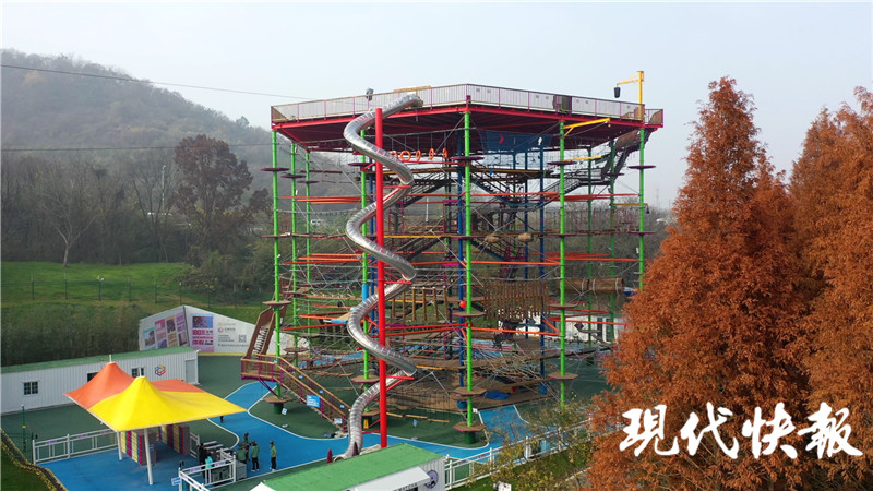 現(xiàn)代快報記者了解到,本次比賽有400余名騎行愛好者參加,他們組成的隊伍隨著景色優(yōu)美的園區(qū)景觀道路蜿蜒而行。與此同時,自行車虛擬AI系統(tǒng)俱樂部線上賽也在主會場進(jìn)行,勇于挑戰(zhàn)的車友們在虛擬的騎行線路場景中激烈比拼,一搏高下?;顒蝇F(xiàn)場,還有不少健身愛好者體驗了聚寶山公園的“金陵矩陣”,這是一個集戶外拓展、攀爬、飛躍、滑道于一體的戶外“輕極限”高空繩索攀爬項目,是南京市民健身的好去處。