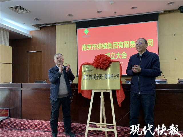 在會(huì)上,市供銷社理事會(huì)主任陳恒斌宣布供銷集團(tuán)正式成立,并與南京市市場(chǎng)監(jiān)督管理局局長(zhǎng)時(shí)新峰共同為市供銷集團(tuán)揭牌。