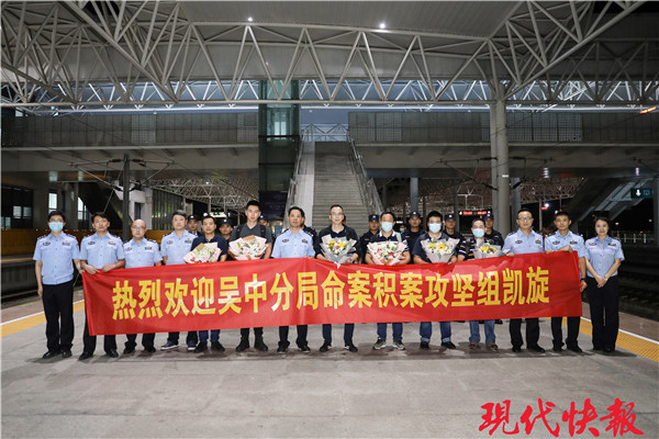 △ 警方押解嫌疑人返回江蘇
