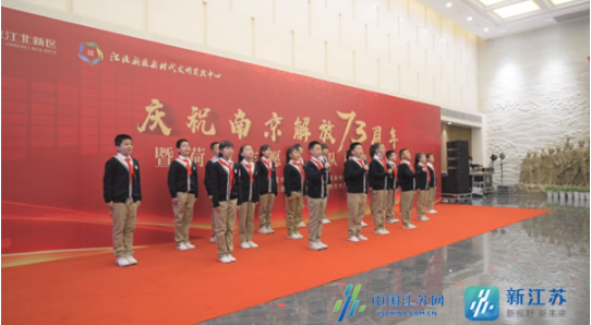 “請(qǐng)黨放心,強(qiáng)國(guó)有我。”活動(dòng)現(xiàn)場(chǎng),江北新區(qū)浦廠小學(xué)的學(xué)生高聲朗誦《七律•人民解放軍占領(lǐng)南京》并進(jìn)行“紅色精神代代傳”火炬?zhèn)鬟f儀式。