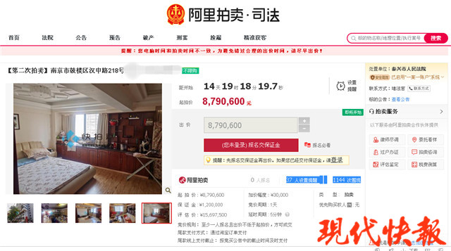 (記者 季雨)因民間借貸糾紛,南京市漢中路一套202㎡的房產(chǎn)將進(jìn)行司法拍賣。這套房產(chǎn)市場(chǎng)價(jià)估值1569.75萬,現(xiàn)在降價(jià)690多萬,以879萬底價(jià)起拍。不過,這套房產(chǎn)之所以受關(guān)注,不是因?yàn)樗祪r(jià)拍賣,而是因?yàn)樗詭?ldquo;拉小+29中”雙學(xué)區(qū)的光環(huán)。