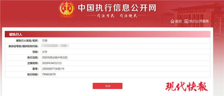 2020年4月21日,西安鐵路運(yùn)輸中級(jí)法院將甘薇列為被執(zhí)行人,執(zhí)行標(biāo)的為7.99億元。至此,甘薇被執(zhí)行標(biāo)的金額累計(jì)已經(jīng)超過(guò)了14億。