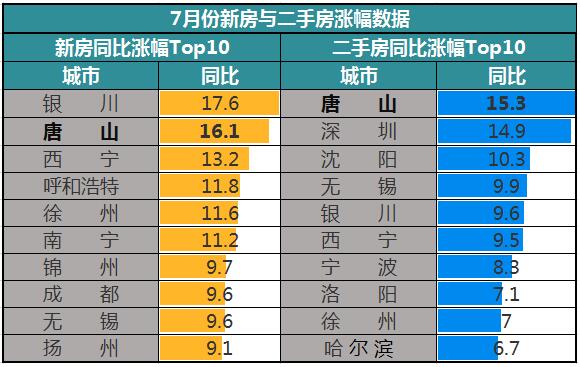銀川、唐山、成都、沈陽(yáng)均多次上榜全國(guó)新房、二手房房?jī)r(jià)環(huán)比漲幅排行前十。