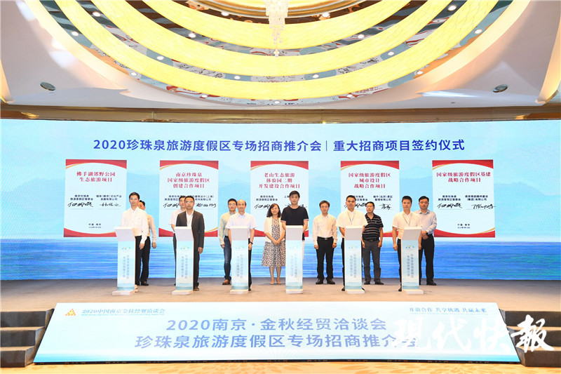 (記者 劉偉娟)今后,生活在南京浦口,就如同住在花園里。9月18日,2020南京·金秋經(jīng)貿(mào)洽談會(huì)珍珠泉旅游度假區(qū)專場(chǎng)招商推介會(huì)開(kāi)幕?,F(xiàn)代快報(bào)記者獲悉,10個(gè)項(xiàng)目現(xiàn)場(chǎng)簽約落戶浦口,總簽約金額100億元,將助力浦口打造“都市圈最美花園”,為浦口文旅發(fā)展注入新動(dòng)能、新活力。