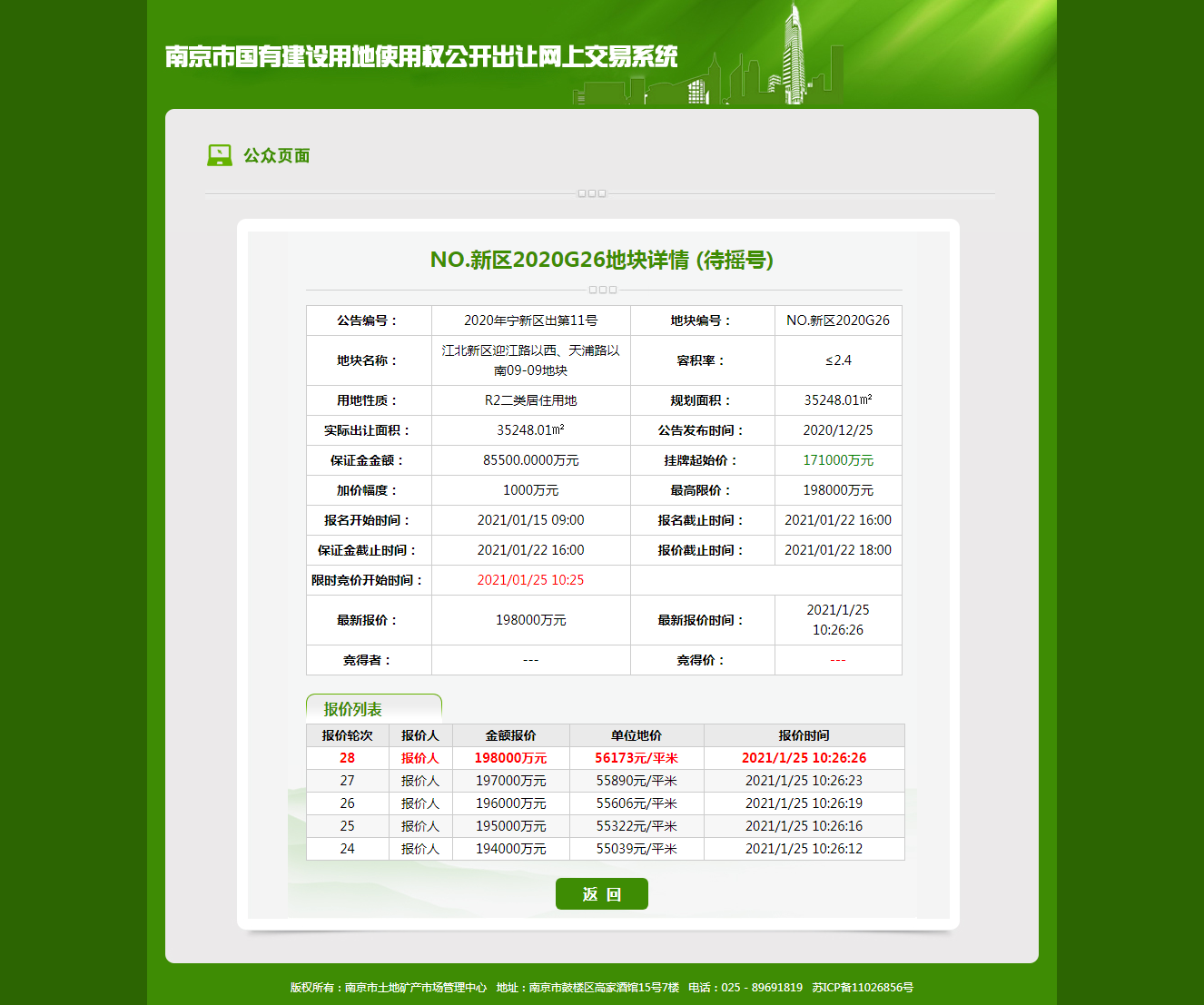 △ 新區(qū)G26成交情況 南京土地市場網(wǎng)截圖