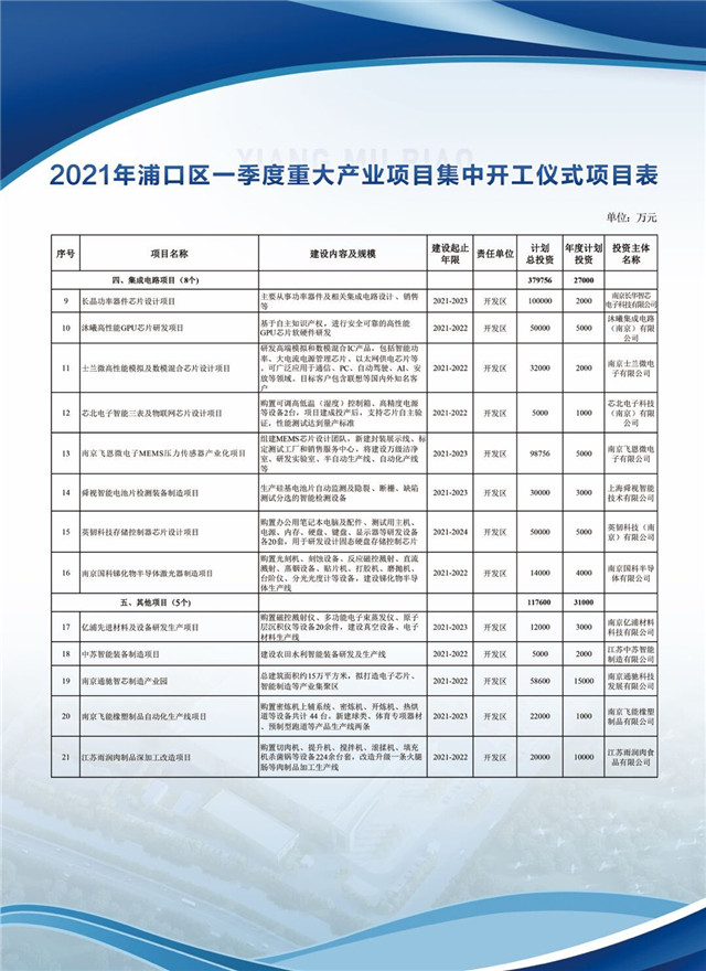 開工儀式上,浦口區(qū)委書記祁豫瑋表示,今年是全市“產業(yè)質效提升年”,浦口將嚴格按照市委市政府部署,以項目建設的高質量推動產業(yè)質效的大提升,具體做到“三個到位”:一是對接到位。建立健全領導干部掛鉤重大項目機制,定期調度、定期研究、定期觀摩,全力幫助企業(yè)解決好施工建設、項目審批、工程用工等實際困難。二是服務到位。認真總結臺積電從動工到進機14個月、華天科技從動工到投產17個月的經驗做法,執(zhí)行落實優(yōu)化營商環(huán)境市新100條、區(qū)18條,為項目推進提供更加優(yōu)質的服務。三是保障到位。切實做好全區(qū)面上疫情防控、安全穩(wěn)定等工作,為項目建設創(chuàng)造有利環(huán)境。