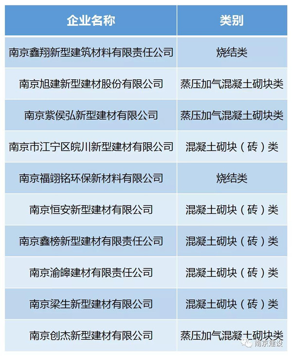 △ 南京市首批新墻材企業(yè)綠色生產(chǎn)基地名單
