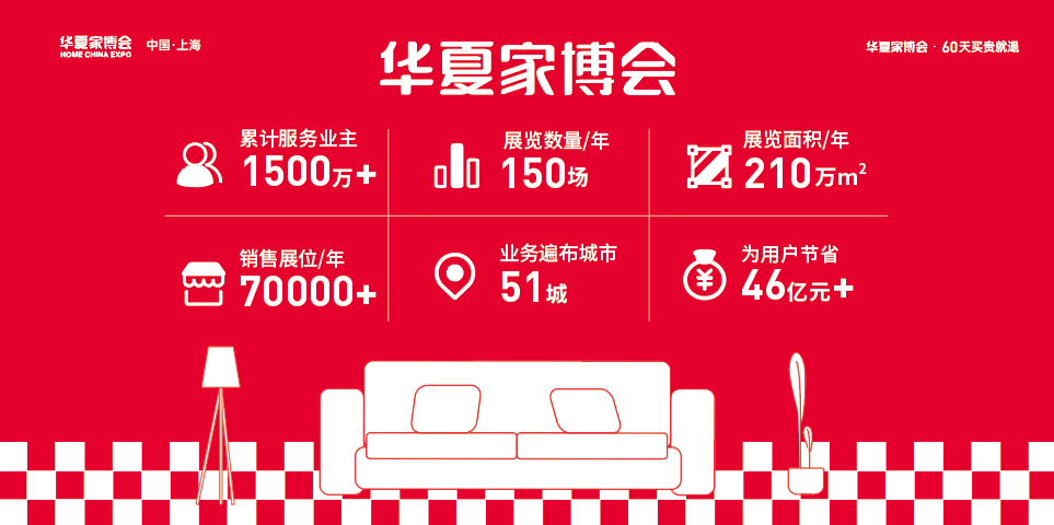 2009年華夏家博從上海啟程,到北京、廣州、武漢、天津、重慶、鄭州、青島.....12年,390多場(chǎng)家博會(huì),3000家國(guó)內(nèi)外一線大牌,累計(jì)服務(wù)1350萬(wàn)+用戶,SVIP用戶超150萬(wàn)人次,展出面積超過(guò)1100萬(wàn)平,平臺(tái)交易額突破490億。今天的華夏家博會(huì),已成為眾多家裝消費(fèi)者裝修采購(gòu)的主流選擇。