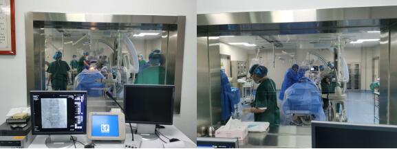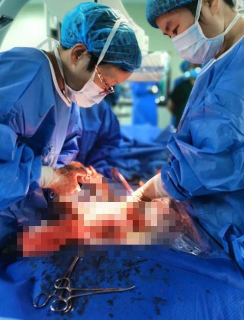 手術(shù)當(dāng)天,相關(guān)科室各司其職,麻醉科的手術(shù)器具、輸血科的血液制品等均準(zhǔn)備妥當(dāng)。當(dāng)日上午DSA導(dǎo)管室內(nèi),劉祥副主任的髂總動(dòng)脈球囊順利放置,隨后麻醉科陳緒軍主任對(duì)患者進(jìn)行了全身麻醉;11:05分,剖宮產(chǎn)手術(shù)開(kāi)始,產(chǎn)科李春霞主任親自操刀,僅三分鐘就將胎兒取出,胎兒反應(yīng)良好??烧嬲目简?yàn)還在后面:因胎盤(pán)完全覆蓋宮頸內(nèi)口,并且有部分植入,剝離胎盤(pán)時(shí)其附著處子宮肌壁菲薄如紙,剝離困難,且子宮收縮差,出血量非常多。事不宜遲,該“球囊”出馬了,依李春霞主任的要求,劉祥副主任立即進(jìn)行髂總動(dòng)脈球囊臨時(shí)阻斷子宮血流,術(shù)野出血立刻減少了許多,同時(shí),麻醉團(tuán)隊(duì)密切監(jiān)測(cè)著患者的生命體征,根據(jù)醫(yī)囑及時(shí)輸血補(bǔ)液。在麻醉科、輸血科的穩(wěn)妥支持及劉祥副主任的“球囊阻斷”良好止血的配合下,手術(shù)臺(tái)上的產(chǎn)科醫(yī)師抓緊時(shí)間進(jìn)行植入胎盤(pán)的處理及創(chuàng)面的縫扎止血,在最短的時(shí)間內(nèi)完成了人工剝離胎盤(pán)、子宮動(dòng)脈上行支結(jié)扎術(shù)、宮腔紗條填塞,術(shù)中患者生命體征平穩(wěn),手術(shù)也最終順利結(jié)束。