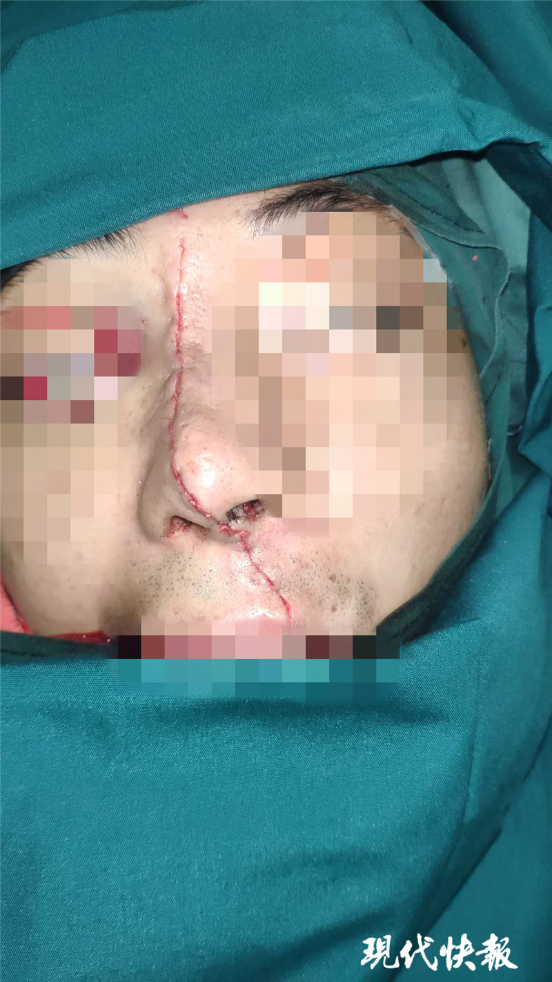 (通訊員 王偉 記者 張曉培)近日,徐州小伙張強(化名)遭遇了驚魂一刻,他在操作電鋸時,電鋸反彈后從其面部豎切而過,鼻子被劈成兩半,傷口長達十余厘米。經(jīng)過3小時手術(shù),醫(yī)生成功為其“拼臉”。