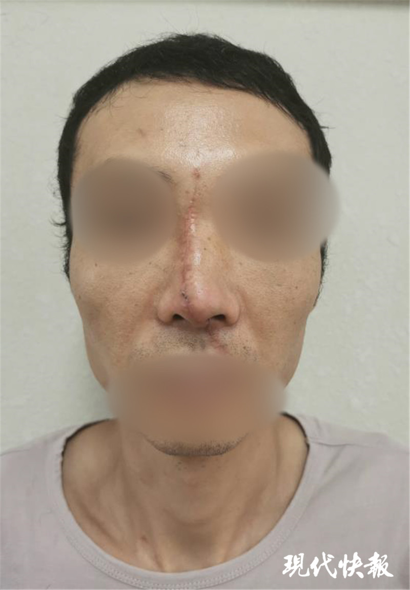 7月下旬的一天,剛過30歲的張強在操作電鋸干活時,不料電鋸反彈,其面部被電鋸豎著切開,鼻子被切成兩半,傷口沿額頭、鼻子一直延伸到唇部,傷情非常嚴重。