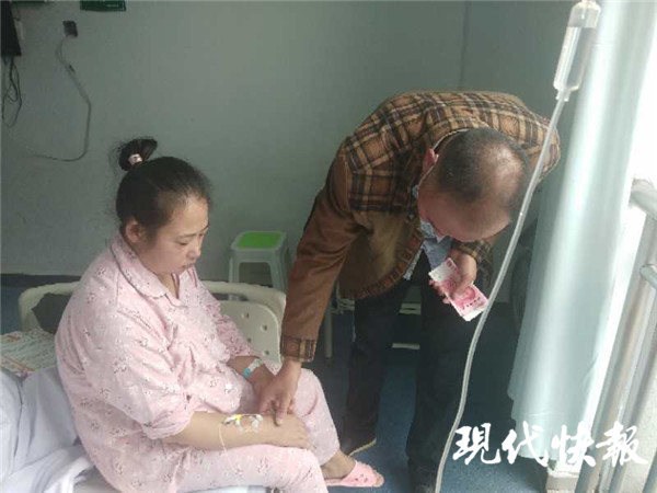 △ 王榮云把籌來(lái)的醫(yī)藥費(fèi)送給戴翠美