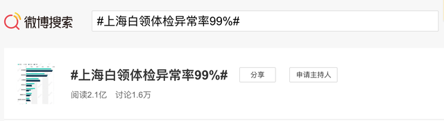 近日,一份此前由上海外服聯(lián)合《大眾醫(yī)學》發(fā)布《2019上海白領健康指數(shù)報告》顯示,2018年上海白領體檢異常比率高達98.75%。換句話說,100位公司人當中,只有不到2個人是完全健康的。
