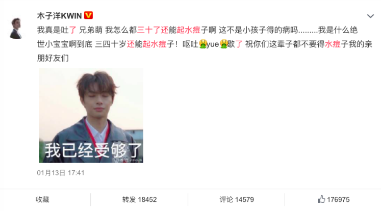 男星木子洋吐槽三四十歲還起水痘上熱搜
