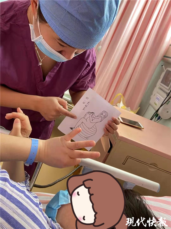 (通訊員 秦靜 劉威 記者 李子璇)無(wú)法用語(yǔ)言交流,又不太識(shí)字的聾啞孕婦,如何在分娩過(guò)程中和助產(chǎn)士交流呢?2月17日,淮安市婦幼保健院產(chǎn)房的助產(chǎn)士通過(guò)手繪漫畫(huà)幫助這樣一名特殊孕婦順利分娩。雖然聽(tīng)不到,但看到健康可愛(ài)的小家伙,胡女士(化姓)還是留下了激動(dòng)的淚水,她照著手機(jī)在紙上寫(xiě)下“謝謝”,感謝所有為這次最安靜分娩努力的人。