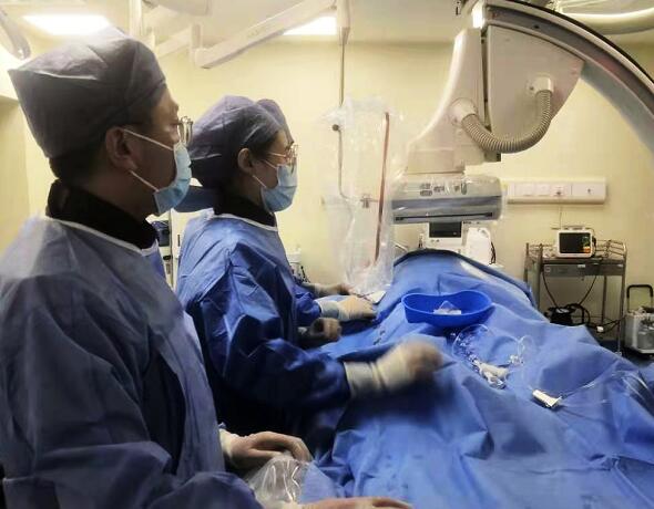 此時(shí),患者突發(fā)心源性休克,病情危重,急診科醫(yī)生立即同會(huì)診的心內(nèi)科醫(yī)生組織搶救,予以藥物負(fù)荷,同時(shí)建議立即進(jìn)行手術(shù),開通血管。在征得家屬同意后,緊急開通綠色通道。15:00,手術(shù)開始,但是手術(shù)過程并不是很順利,術(shù)中患者不斷出現(xiàn)電風(fēng)暴、室顫、阿斯發(fā)作、再灌注性心律失常等癥狀,該院心內(nèi)科主任張郁青帶領(lǐng)其介入團(tuán)隊(duì)先后進(jìn)行三次除顫搶救,快速有序精準(zhǔn)的搶救,成功地將患者從死亡線上拉了回來。半小時(shí)后,順利開通血管,成功植入支架。目前患者生命體征平穩(wěn),在該科進(jìn)一步治療。