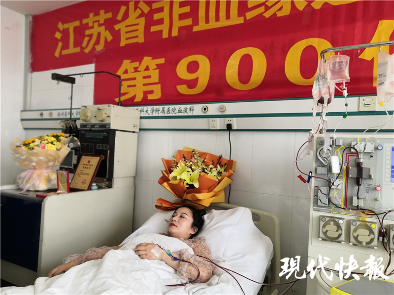 當(dāng)天上午,在徐醫(yī)附院21樓單核細(xì)胞采集室內(nèi),鞏景景躺在潔白的病床上開(kāi)始造血干細(xì)胞采集。鞏景景今年29歲,是徐州豐縣人民醫(yī)院的護(hù)士,去年5月在豐縣血站獻(xiàn)血時(shí)加入了中華骨髓庫(kù),沒(méi)想到短短半年時(shí)間,12月份就接到了豐縣紅十字會(huì)的電話,稱其與一名血液病患者初配成功。