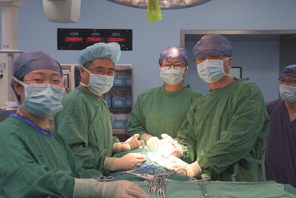 接診后,嵇慶海教授認(rèn)為患者必須盡快進(jìn)行手術(shù)治療,否則影響今后的生活質(zhì)量?;颊邔儆诜只图谞钕侔只图谞钕侔┌ㄈ轭^狀和濾泡型,其主要治療手段就是以手術(shù)治療為主。目前公認(rèn)的治療分化型甲狀腺癌的首選方法就是甲狀腺切除手術(shù)及規(guī)范的頸部淋巴結(jié)清掃,但這也對手術(shù)醫(yī)生有著較高的技術(shù)要求。而方女士的手術(shù)范圍大,神經(jīng)損傷的風(fēng)險(xiǎn)也比較大,所以一般都是需要分次進(jìn)行手術(shù)。但為了減少患者手術(shù)次數(shù),減輕患者痛苦,嵇慶海教授決定一次手術(shù)完成。