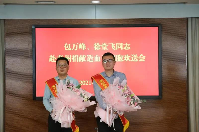 (通訊員 劉佳 記者 顧瀟)5月6日上午,揚州寶應縣政府為即將赴泰州捐獻造血干細胞的寶應縣兩位志愿者包萬峰、徐堂飛舉行歡送儀式?,F(xiàn)代快報記者了解到,這兩位志愿者都是當?shù)啬贻p的黨員干部。
