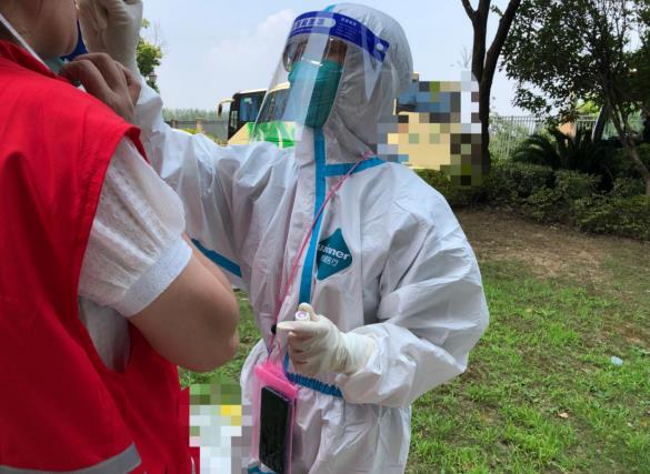 就這樣一輪接著一輪的核酸采集,我到祿口已經(jīng)十五天了。半個月來,我和我的隊友們每天都經(jīng)歷著汗水把衣服濕了干,干了又濕的過程,身上悶的都是汗臭味,手被泡得發(fā)白,臉上是被N95口罩勒出了的道道印痕,有的同事中暑暈倒,有的腹瀉,有的全身長滿痱子,有的頸肩腰痛,還有的想念自己年幼的寶寶偷偷流淚……然而從沒聽到、從沒感受到這群逆行者們有絲毫的抱怨和放棄,在團(tuán)隊里我感受到了護(hù)士長對我的關(guān)愛,體會到了團(tuán)結(jié)合作的可貴,經(jīng)受住了風(fēng)雨酷暑的考驗,雖然有時會遇到因恐懼而不配合的居民,有時會覺得自己還是孩子而想念爸媽,但是聽到居民一聲聲的感謝,得到隊友一直的鼓勵和肯定,覺得自己的付出都是值得的,我為自己是眾多逆行天使中的一員感到驕傲和自豪。
