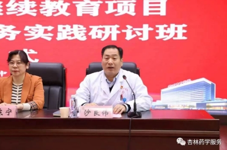邳州市中醫(yī)院黨委書記沙良偉在致詞中對在百忙中蒞臨醫(yī)院研討的各位專家、教授及醫(yī)藥學(xué)科同仁表示熱烈的歡迎與誠摯的謝意,并介紹了醫(yī)院近年來的發(fā)展情況,對藥學(xué)部今后的工作提出要求,希望藥學(xué)部能夠充分利用此次難得的機會與各位專家、教授、同仁交流學(xué)習(xí)、溝通思想、研討方法,不斷提升藥學(xué)服務(wù)能力,助力醫(yī)院高質(zhì)量發(fā)展。