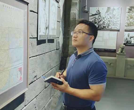十年來(lái),他先后在辦公室、賓館經(jīng)理位置上歷練過(guò),2014年他又回到社教部任主任。在主任的位置上,他通過(guò)思考認(rèn)為,現(xiàn)在的紀(jì)念館社會(huì)教育功能還存在不足:一是教育項(xiàng)目單一,同質(zhì)化問(wèn)題嚴(yán)重;二是講解內(nèi)容針對(duì)性不足,采用的講解方式依然是單向的“填鴨式”和“灌輸式”;三是特色教育項(xiàng)目匱乏。為此,他首先從提高講解員隊(duì)伍的綜合素質(zhì)入手,針對(duì)不同的參觀對(duì)象,編寫了不同的專用講解詞。他組織挖掘了革命紅色故事,因時(shí)制宜地研發(fā)紅色教育培訓(xùn)內(nèi)容,像紅色家書、紅歌教學(xué)、紅色故事宣講、紅色詩(shī)詞賞析等形式多樣,使紅色文化培訓(xùn)課程更加豐富多彩。紀(jì)念館新增了磨盤山抗日遺址后,他立即組織社教部學(xué)習(xí)新遺址的展覽內(nèi)容,并且在最短時(shí)間內(nèi)順利開(kāi)講。