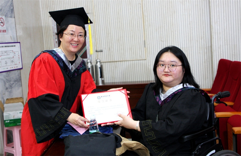 院校領(lǐng)導(dǎo)周虹書記親手送證書到殘疾畢業(yè)生同學(xué)手上