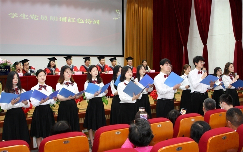 大學(xué)生黨員代表團(tuán)隊鏗鏘有力地朗誦紅色經(jīng)典詩詞