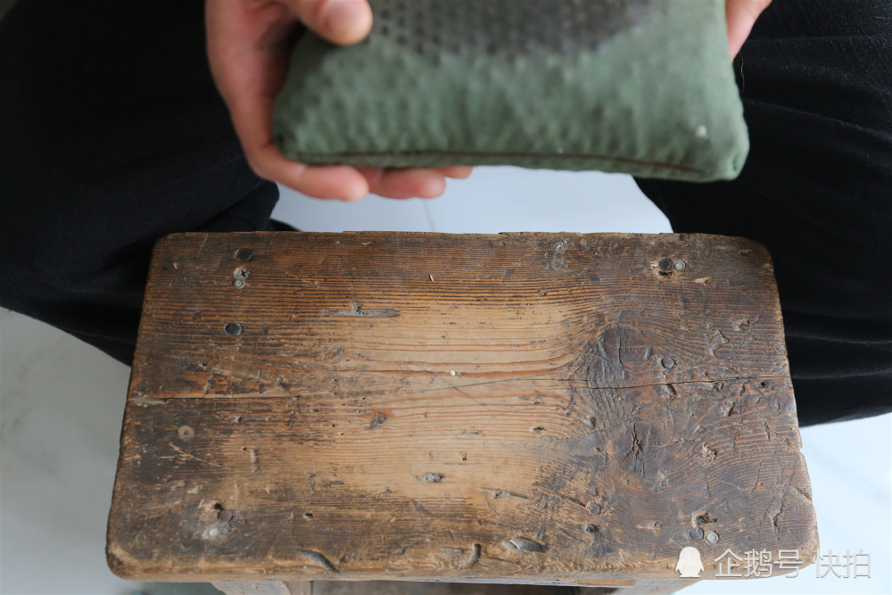 據(jù)了解,李激光練功用的是一袋鋼球和一把鐵錘。每天在規(guī)定的時間,就用右手的手掌、寸指等不停擊打鋼球袋,然后,再用鐵錘敲打手背。由于長期反復(fù)練習(xí),李激光的右手手指、手背、掌心長滿老繭,猛的看上去,他的右手象“腫”了一樣。但是用手摸上去,卻感到手背上“腫”的地方都很結(jié)實。圖為長期練習(xí)鋼珠袋凳子都被磨的發(fā)亮。