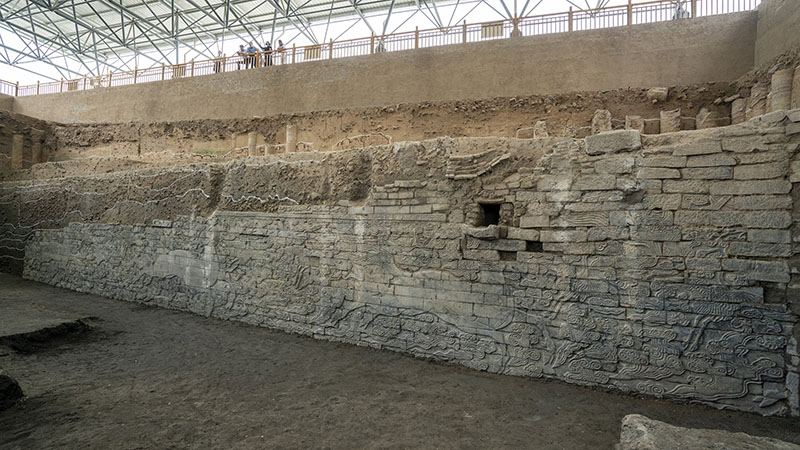 河南開封州橋與汴河遺址中發(fā)掘出來的明代州橋石雕壁畫遺跡(國家文物局供圖)。