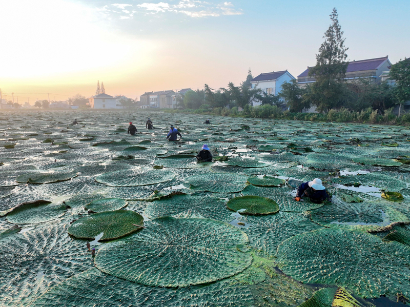 眼下,江蘇省泰州市姜堰區(qū)顧高鎮(zhèn)種植的芡實進入成熟期,種植戶組織人力采收,芡種植基地呈現(xiàn)一派繁忙的豐收景象。新華社發(fā)(顧繼紅 攝)