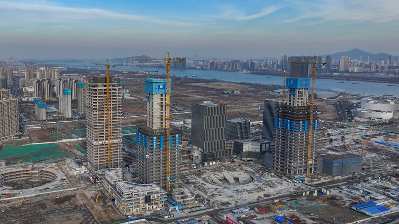 這是1月15日拍攝的江蘇省南京市江北新金融中心一期項(xiàng)目施工現(xiàn)場(無人機(jī)照片)。新華社記者 李博 攝