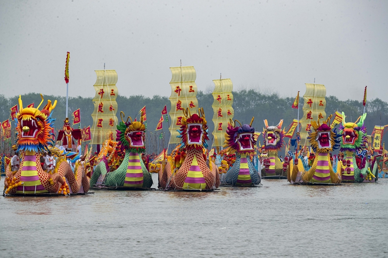 4月6日,人們參加會船舞龍表演。新華社發(fā)(湯德宏?攝)
