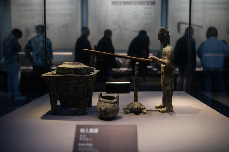 4月13日,游客在荊州博物館參觀。