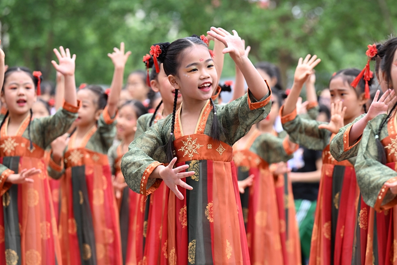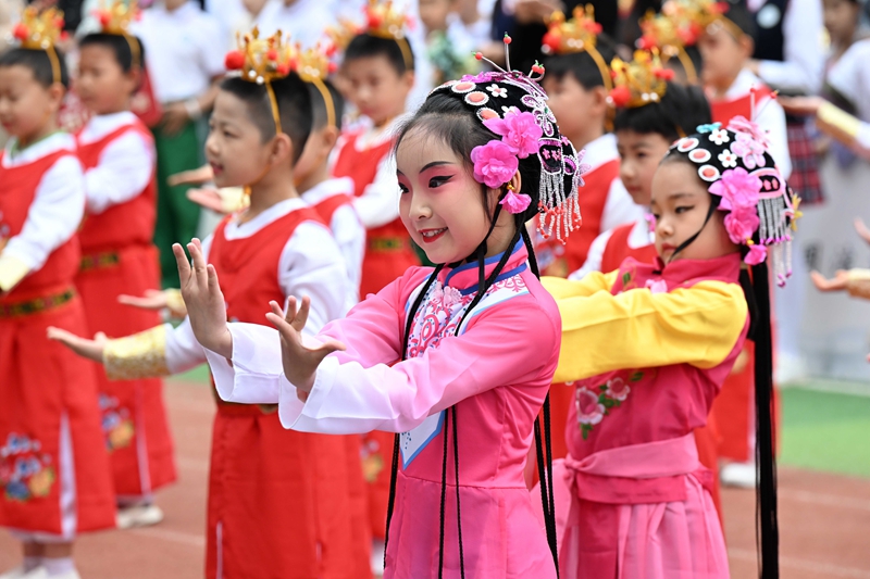 4月28日,學(xué)生在河北省石家莊市新華區(qū)西苑小學(xué)春季運動會上表演。新華社發(fā)(陳其保?攝)
