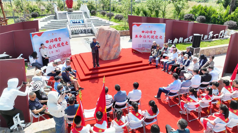 愛(ài)國(guó)主義是一面具有最大號(hào)召力的旗幟,是中華民族的優(yōu)良傳統(tǒng)。為厚植家國(guó)情懷、堅(jiān)定理想信念,傳承優(yōu)秀文化,南京市江寧區(qū)湖熟街道在丹桂村赤山烽火廣場(chǎng)開(kāi)展“田間課堂——革命烈士說(shuō)黨史第三期”主題活動(dòng),邀請(qǐng)上海市新四軍歷史研究會(huì)六師分會(huì)會(huì)長(zhǎng)張曉宇、現(xiàn)任江寧區(qū)新四軍研究會(huì)副會(huì)長(zhǎng)江開(kāi)明、陶家齊烈士后代及廖海濤烈士后代,為轄區(qū)青少年、黨員群眾講黨史、話初心,進(jìn)一步引導(dǎo)群眾和黨員干部從中汲取強(qiáng)大精神力量。