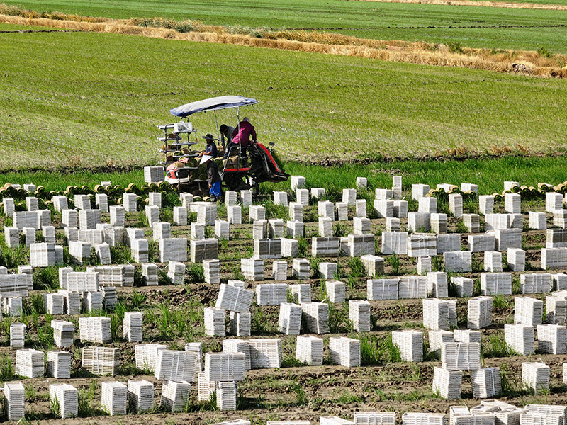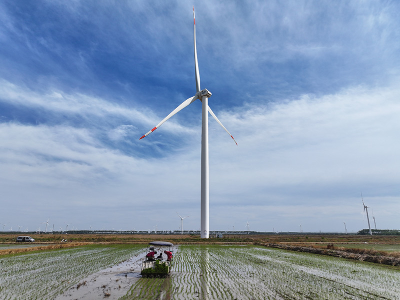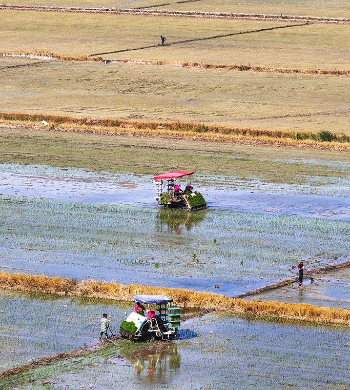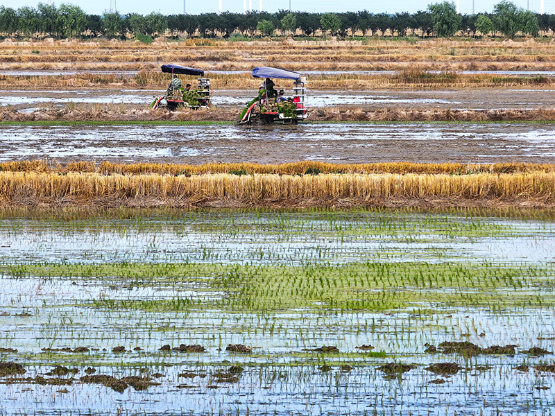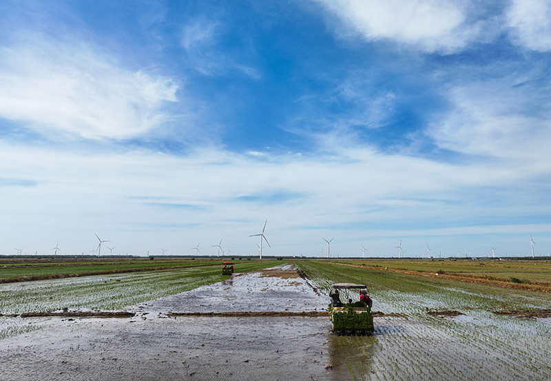 “三夏”時節(jié),位于江蘇省鹽城市射陽縣的江蘇農(nóng)墾臨海農(nóng)場搶抓農(nóng)時,開展機械化插秧作業(yè)。農(nóng)人、農(nóng)機、風車在藍天白云映襯下,構(gòu)成一幅幅美麗的鄉(xiāng)村圖畫。據(jù)了解,今年臨海農(nóng)場水稻種植面積8.4萬余畝,目前插秧作業(yè)已完成過半。