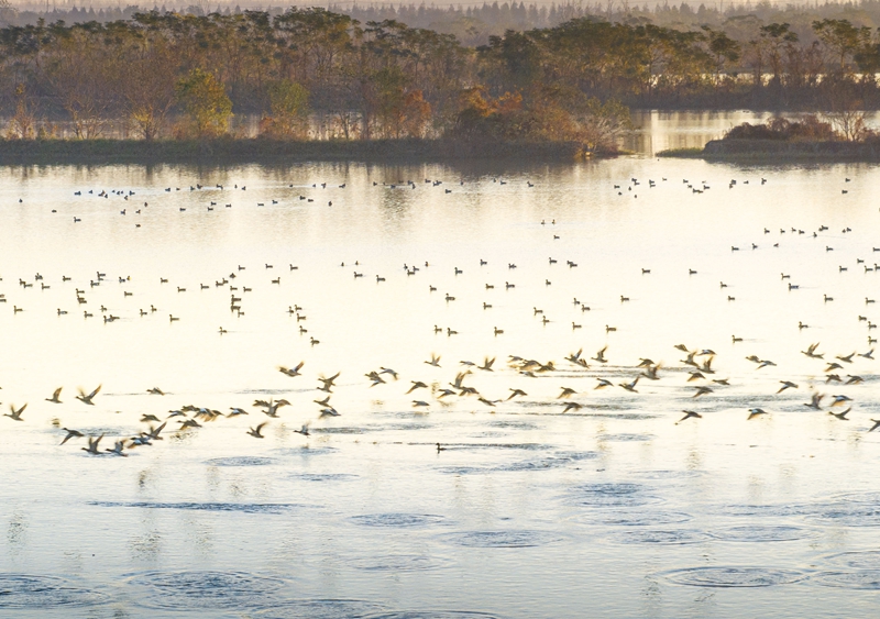 近日,大批候鳥飛抵江蘇省興化里下河國(guó)家濕地公園,它們成群結(jié)隊(duì)在淺灘覓食、休憩,成為冬日里一道美麗的風(fēng)景線。