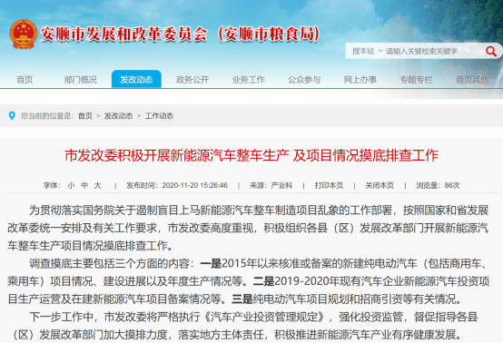 安順發(fā)改委在20日表示,為貫徹落實國務(wù)院關(guān)于遏制盲目上馬新能源汽車整車制造項目亂象的工作部署,按照國家和省發(fā)展改革委統(tǒng)一安排及有關(guān)工作要求,市發(fā)改委高度重視,積極組織各縣(區(qū))發(fā)展改革部門開展新能源汽車整車生產(chǎn)項目情況摸底排查工作。