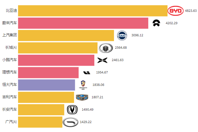 國內(nèi)車企市值TOP10(至2020年12月1日)