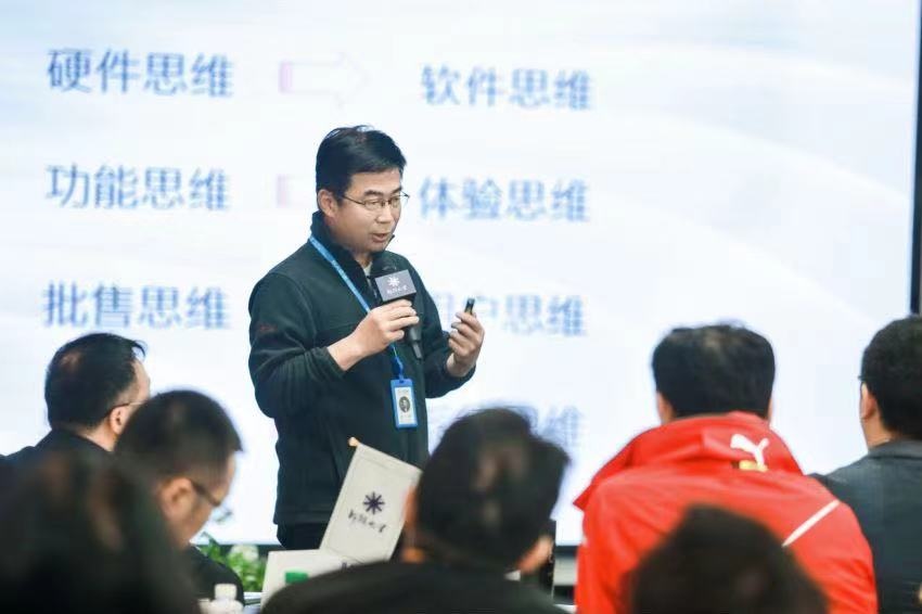 為給學員授課,華人運通高合汽車創(chuàng)始人董事長兼CEO丁磊導師,專程從上海趕回工廠。并沒有工作忙碌的疲憊感,那種充滿活力和自信的氣場,感染著在做的每位學員。他首先對賈可博士及鈴軒班學員此次的高合之行表示了熱烈歡迎,并對軒轅之學的使命表達了贊許。