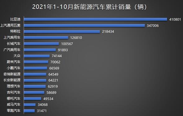 比亞迪一騎絕塵:1-10月份新能源乘用車(chē)品牌銷(xiāo)量公布
