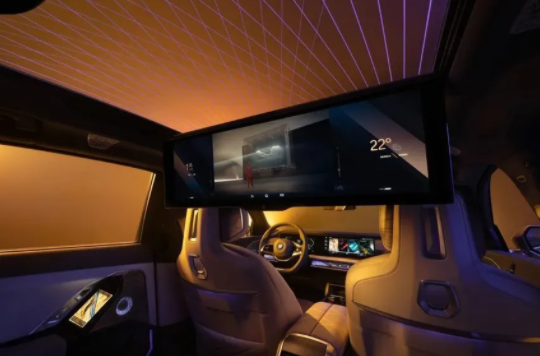 再比如打開車門最引人注目的是貫穿整個前排儀表板和車門的BMW環(huán)抱式交互光帶,與一體式懸浮曲面屏一起,帶來無與倫比的視覺與觸覺感受;還有后排創(chuàng)新地配備了BMW懸浮式巨幕,樹立豪華細(xì)分市場車內(nèi)娛樂系統(tǒng)新標(biāo)桿。