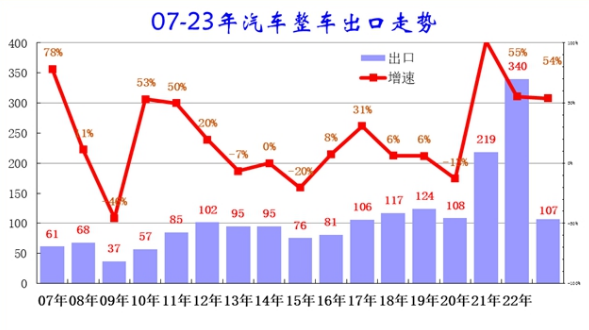 由于海外供應鏈的問題,中國汽車出口強勢崛起。2023年中國汽車出口繼續(xù)保持2022年4季度的銷量,這體現(xiàn)出中國汽車產(chǎn)業(yè)的世界競爭力大幅提升。據(jù)海關總署數(shù)據(jù)顯示,2023年3月,中國出口汽車38.7萬輛,同比增長94.47%。筆者預計,4月翻倍,我對中國汽車出口很樂觀。